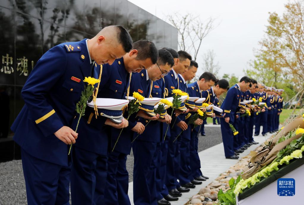 9月30日,消防員在上海松江烈士陵園內的消防烈士紀念園舉行悼念活動。新華社記者 方喆 攝