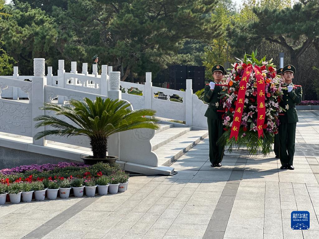 9月30日,遼寧省暨沈陽市向烈士紀念碑敬獻花籃儀式在沈陽抗美援朝烈士陵園紀念碑廣場舉行。新華社記者 李昂 攝