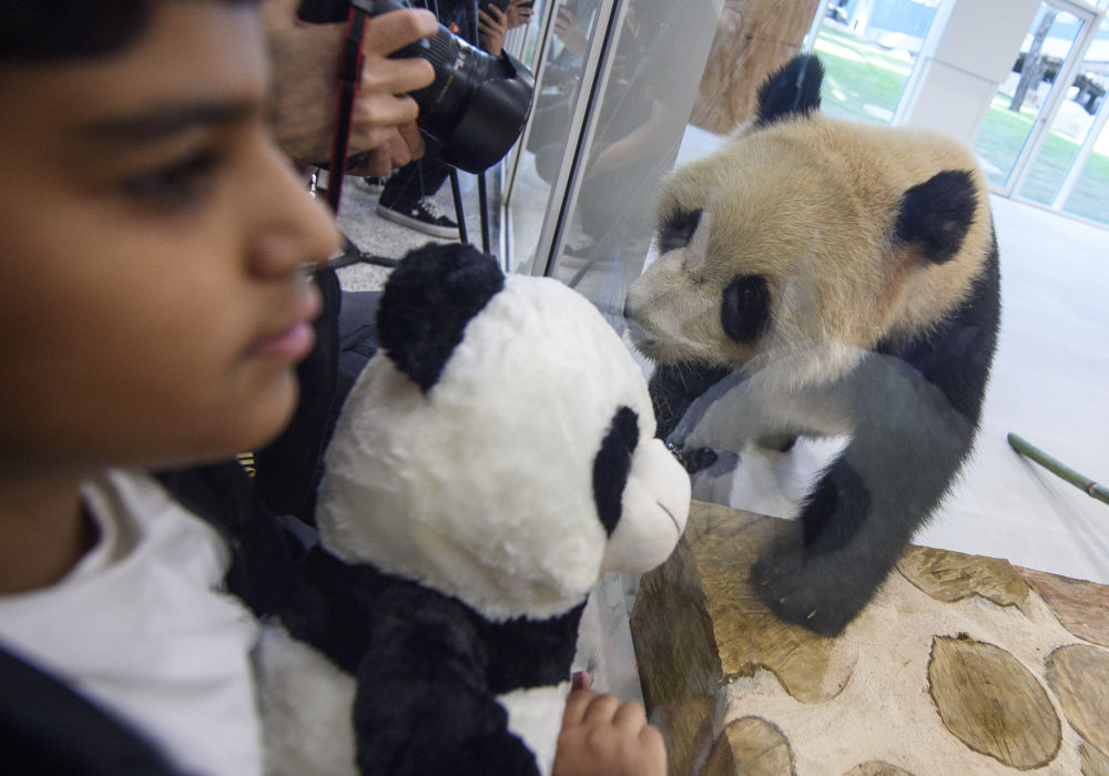 10月19日,大熊貓抵達卡塔爾首都多哈的豪爾熊貓館。新華社發(尼庫攝)