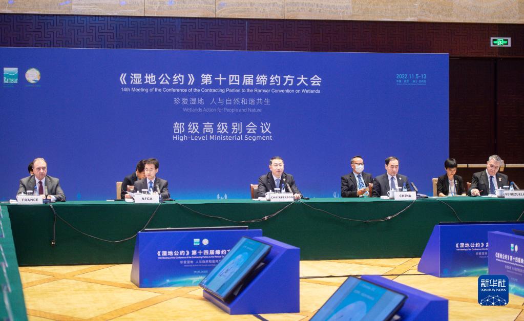 這是11月6日在湖北武漢拍攝的《濕地公約》第十四屆締約方大會部級高級別會議現場。新華社記者 伍志尊 攝