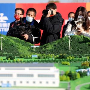 11月16日,參加開工儀式的媒體記者在拍攝鐵礦項目沙盤。