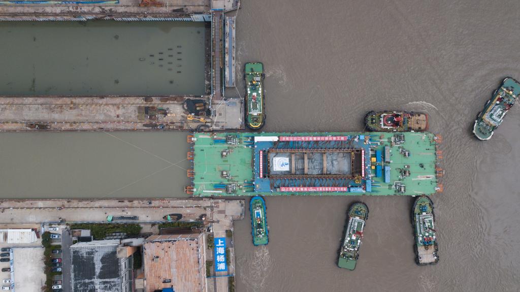 根據長江口二號古船“入塢”方案,長約189米、寬約36米、深達10米的上海船廠舊址1號船塢預先完成了灌水。船塢底部澆筑了一個馬鞍形基座,讓包裹長江口二號古船的弧形梁考古沉箱安放其上。