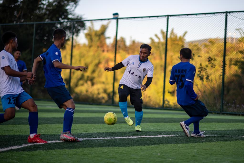 云南省滄源佤族自治縣龍乃村村民在踢足球比賽。