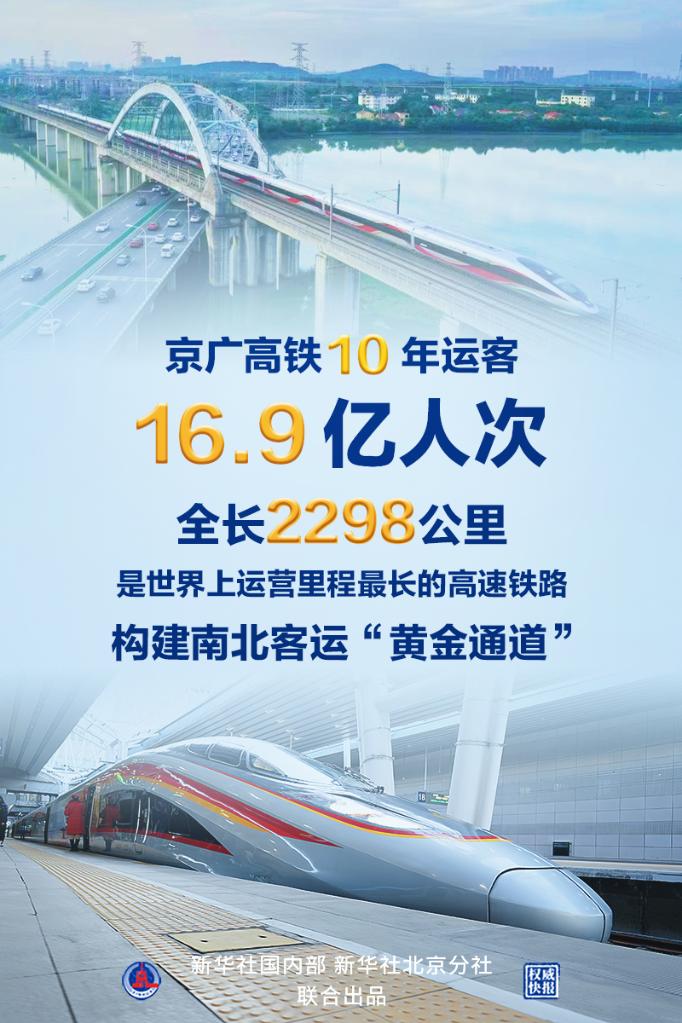 10年來,京廣高鐵累計運送旅客16.9億人次,成為我國最繁忙的客運線路之一。京廣高鐵開通后,北京西站步入高鐵時代,每日圖定始發京廣高鐵列車從60對增加到107.5對。武漢站單日發送旅客由幾千人次增長到最高逾14萬人次。京廣高鐵廣鐵管內共開行60多萬趟動車組,最短發車間隔僅5分鐘。