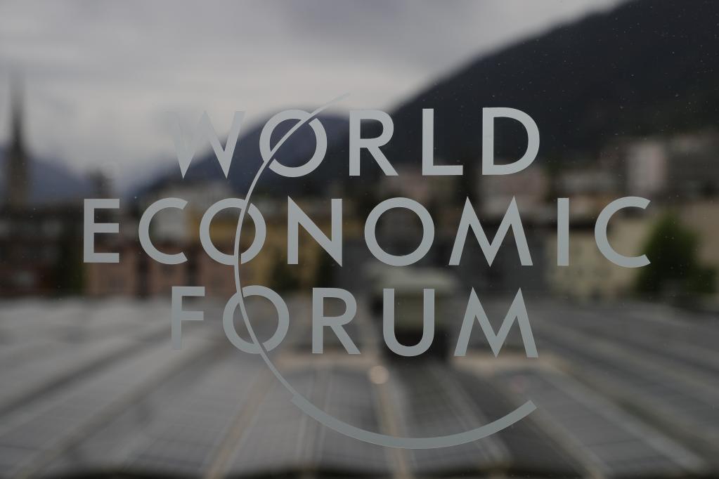 這是2022年5月22日在瑞士達沃斯拍攝的世界經濟論壇年會的標識。新華社記者 鄭煥松 攝