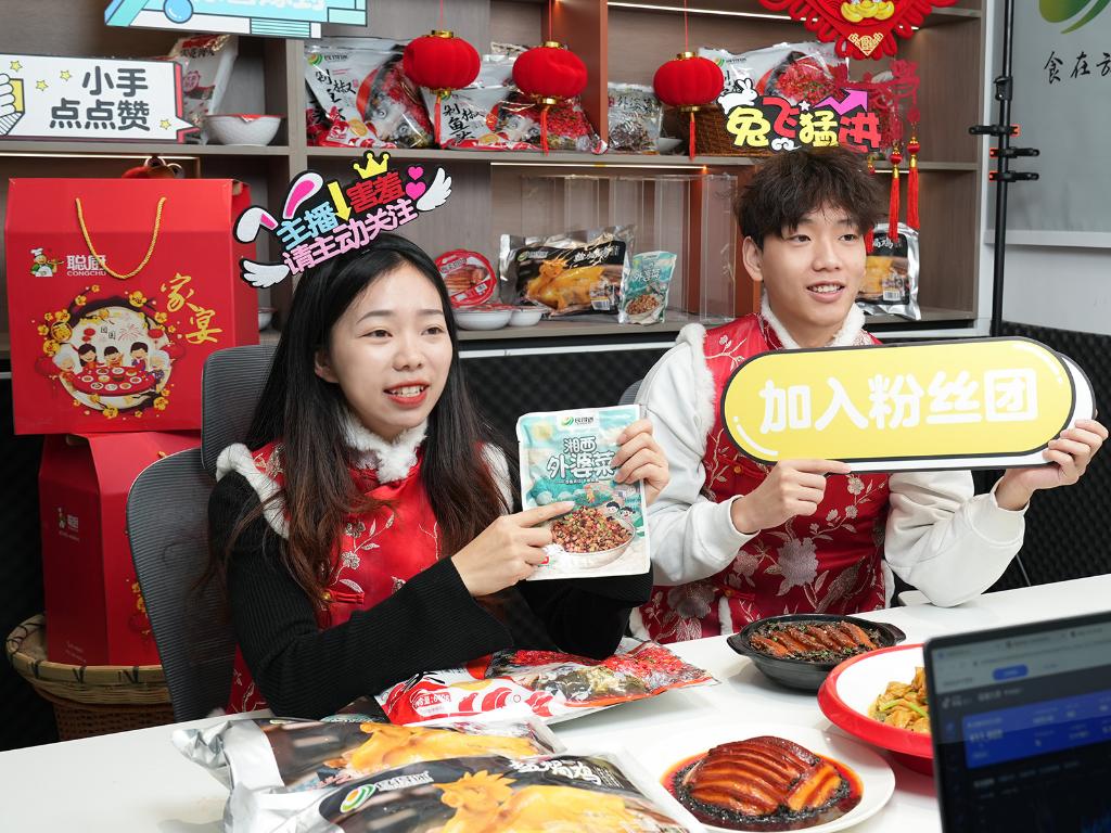 湖南網上年貨節期間,主播們在直播間向網友介紹特色菜品(1月12日攝)。新華社發