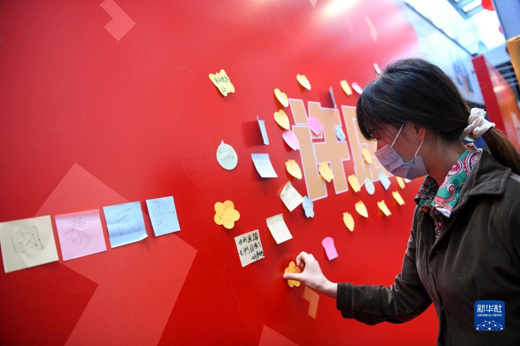 2月6日,一名旅客通過羅湖口岸抵達深圳后,在許愿墻上留言。新華社記者 梁旭 攝