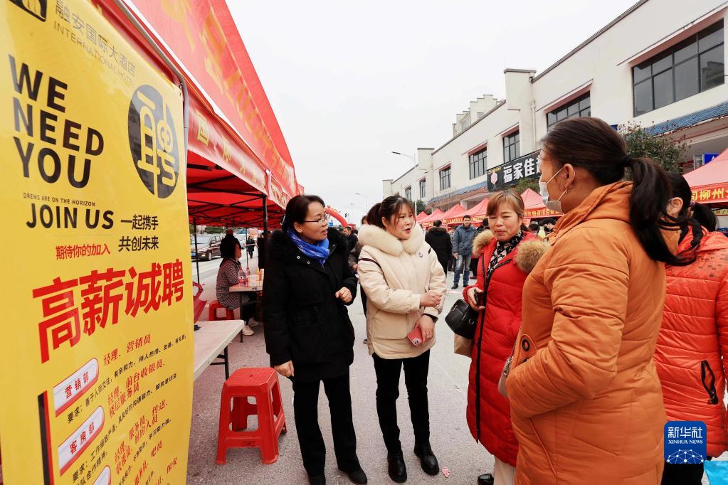 2月10日,在廣西融安縣易地扶貧安置點融康社區,求職者和招聘人員在交流。新華社記者 黃孝邦 攝