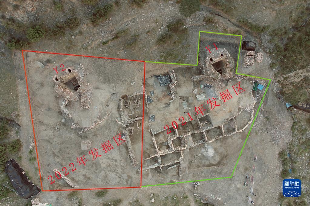 寧夏賀蘭蘇峪口瓷窯遺址2021年和2022年發掘區航拍圖(資料照片)。新華社發(國家文物局供圖)