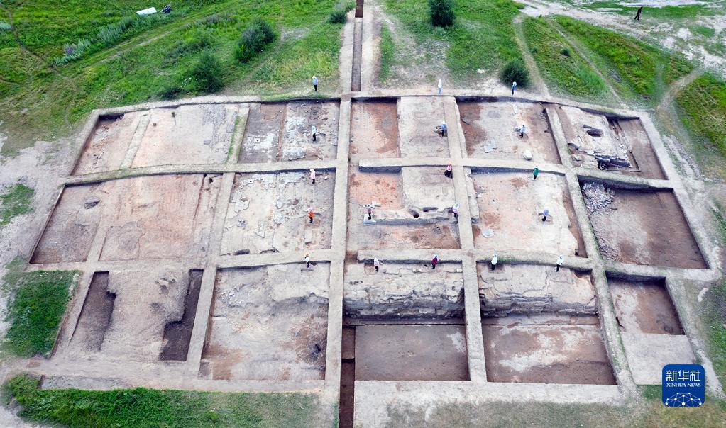 內蒙古巴林左旗遼上京皇城遺址南部一號建筑基址發掘后全景(資料照片)。新華社發(國家文物局供圖)