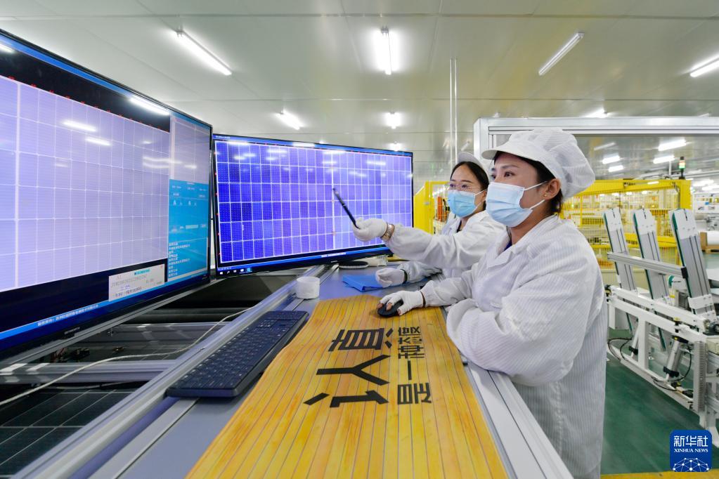 2月16日,工人在古浪縣一家光伏組件生產企業的車間里檢驗光伏組件。