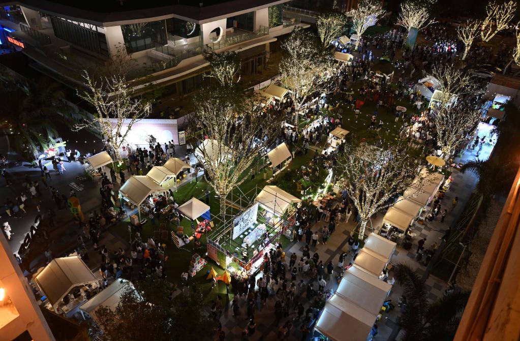 晚風輕拂,市民游客穿行市集,或享受美食,或駐足觀賞,或舉起手機拍照,享受著夜晚的戶外悠閑時光。
