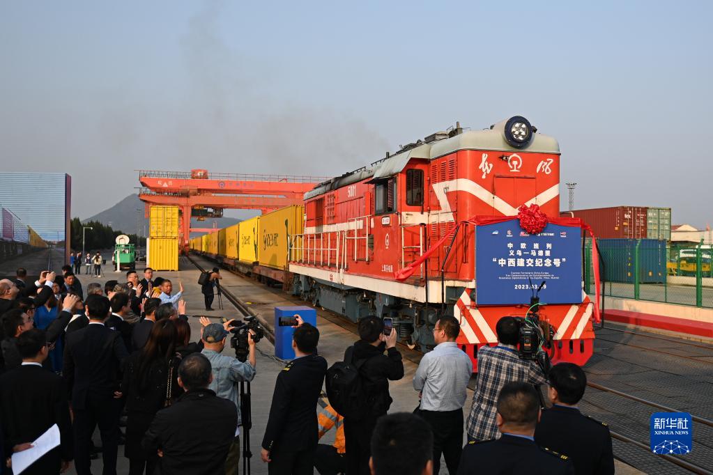 新華全媒+|義烏和馬德里對開“中西建交紀念號”班列