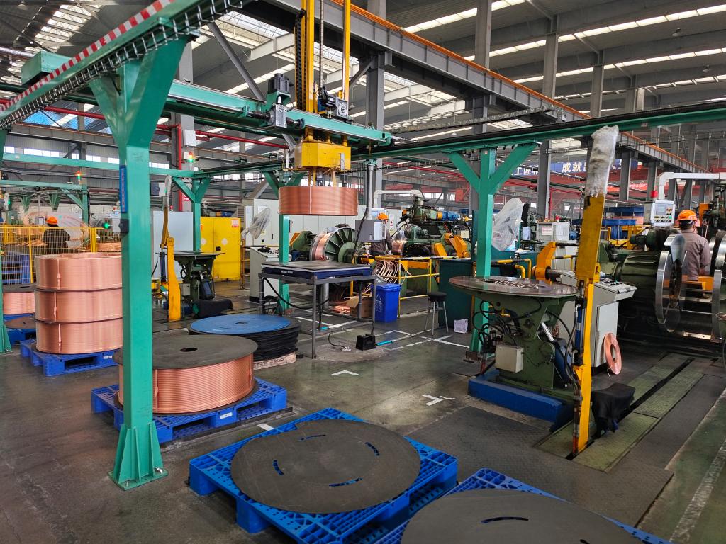 平湖金龍主要生產空調與制冷用高精度銅管。公司生產技術部部長曾慶友告訴記者,通過應用5G+工業互聯網技術,企業實現了無人配料、搬運、倉儲,生產效率提升10%,去年生產銅管約7萬噸,比前年增長約12%,有力提升了企業競爭力。