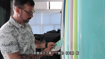 原來就喜歡滑雪的亞歷山大在海南開始學習風箏沖浪,2015年他開創了自己的沖浪品牌,自己設計沖浪板,與廣東及浙江的工廠合作生產。