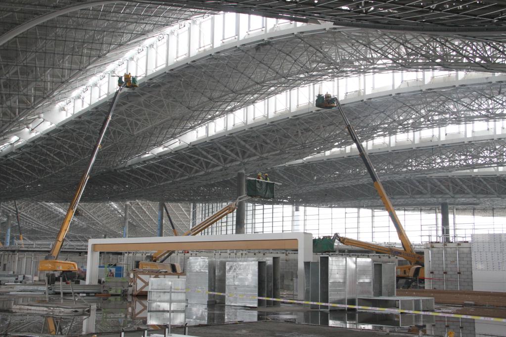 正在加緊建設中的烏魯木齊機場改擴建項目T4航站樓。(新華社記者劉紅霞 攝)