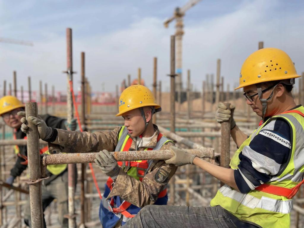 喀什大學東城校區項目現場,中建三局施工人員正在進行主體結構施工。新華社發(馮躍龍 攝)