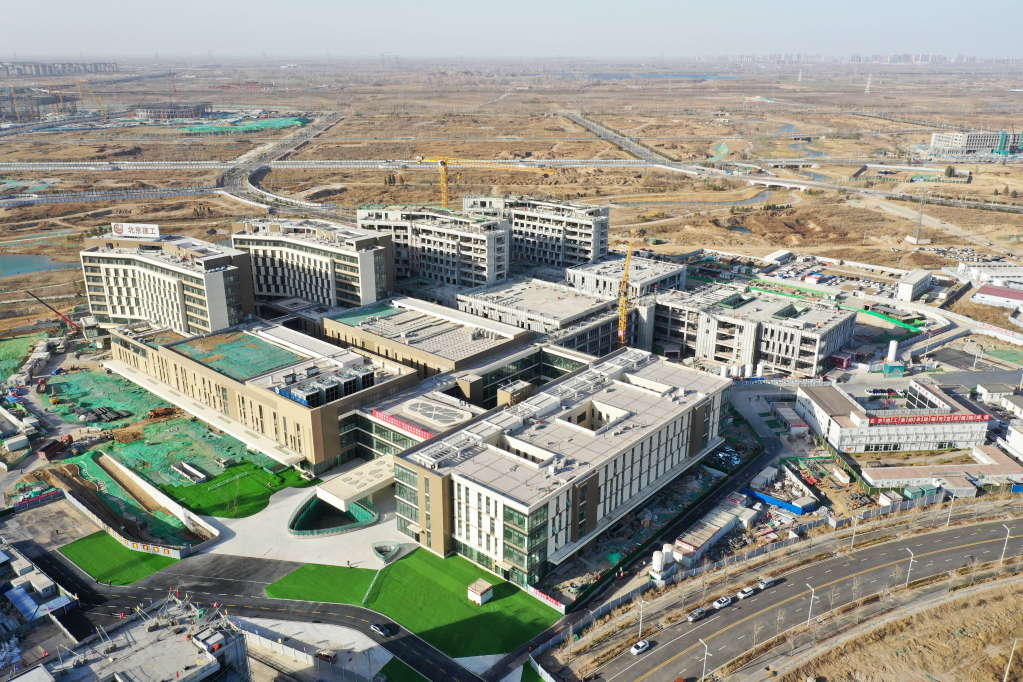 位于雄安新區啟動區的雄安宣武醫院項目現場(無人機照片)。新華社記者朱旭東 攝