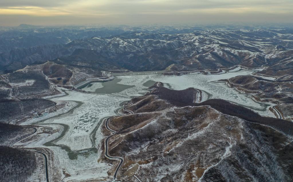 2月21日拍攝的國網新源河北豐寧抽水蓄能電站上水庫(無人機照片)。新華社記者 楊世堯 攝