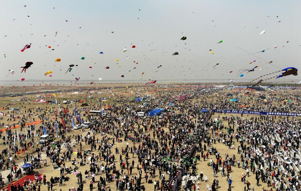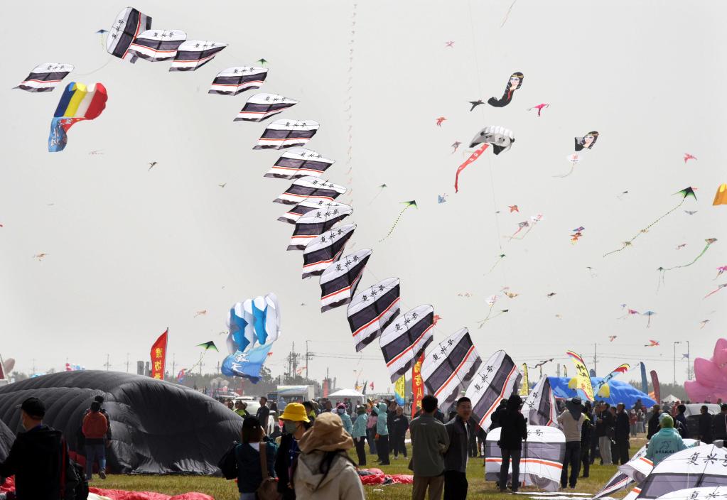 4月的山東濰坊濱海,東風勁吹,天空中飛滿姿態萬千的風箏,或孤蝶獨舞,或鶯燕雙飛,時而扶搖直上,時而騰挪翻飛,把天空點染成一幅“風箏鬧春圖”。
