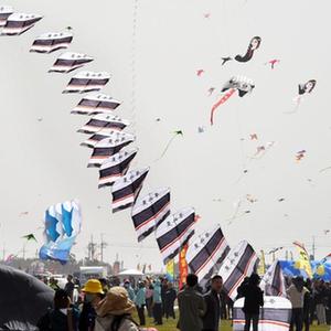 “大家一起用力拉繩!”在濰坊濱海風箏放飛場一角,上海志華風箏隊隊員們正齊心協力把一個巨型鯨魚風箏放飛。這支由十幾名退休老人組成的風箏隊已是第8次來到濰坊。他們把最好的作品帶到濰坊,包括一只鋪展面積達350多平方米的三葉蟲造型風箏。