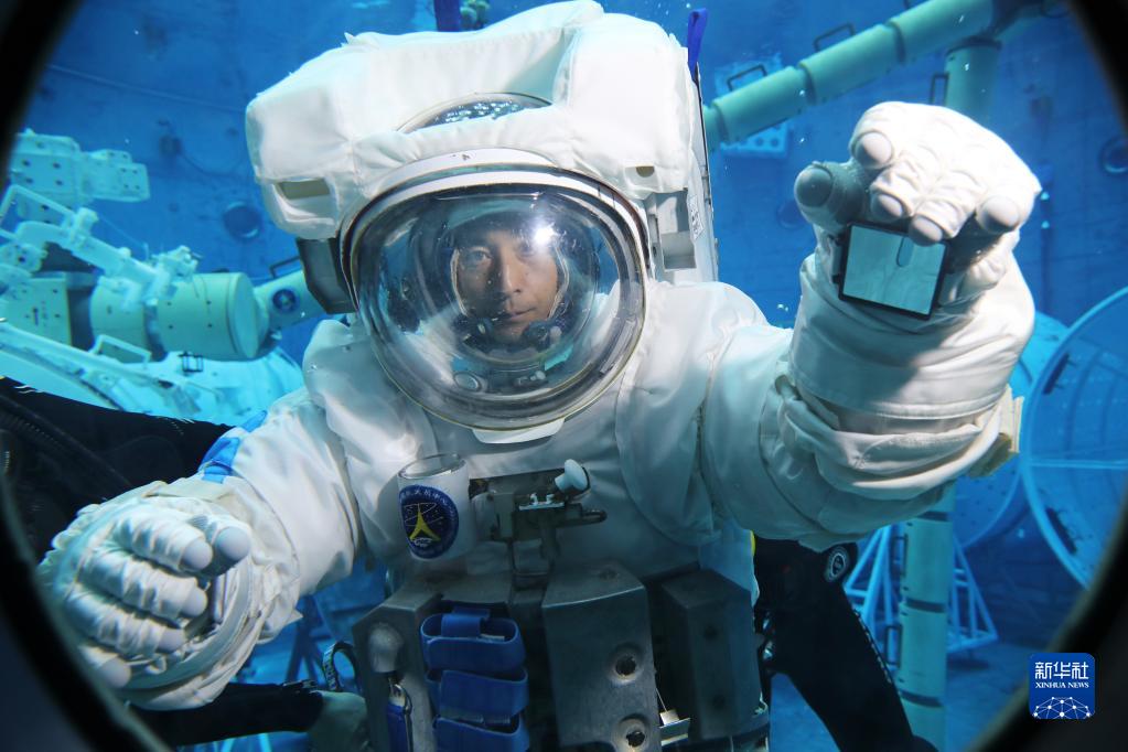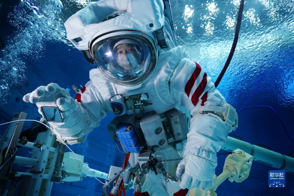 神舟十六號航天員在進行水下訓練(2022年9月14日攝)。新華社發(徐部 攝)