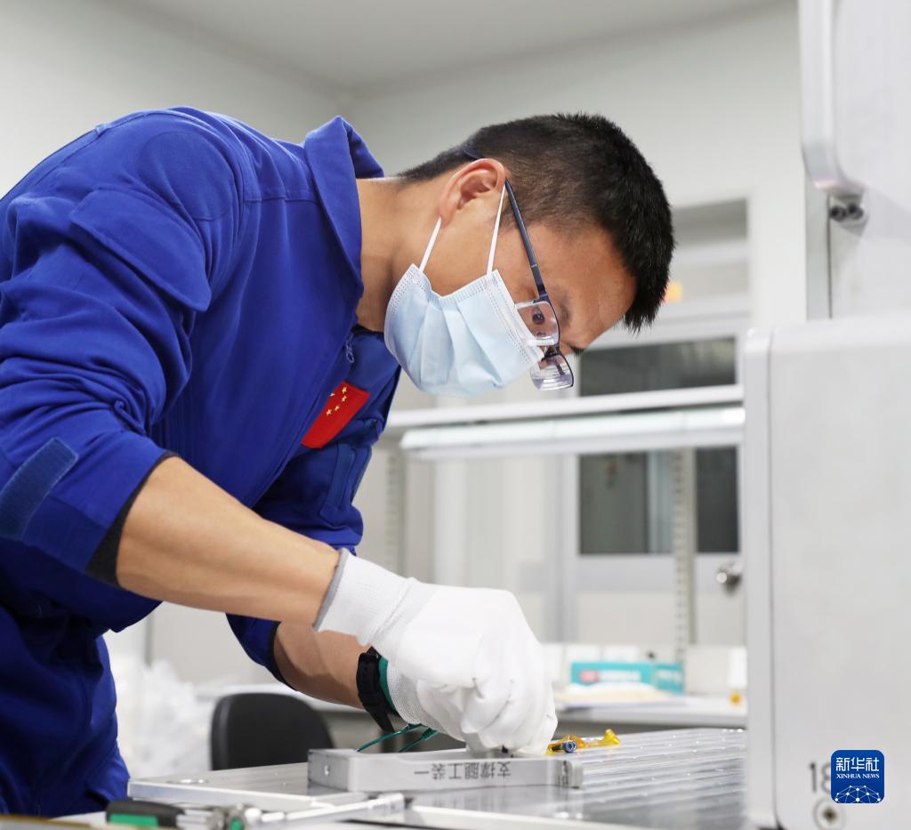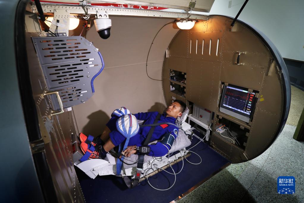 神舟十六號航天員乘組進行醫學研究項目操作(2023年3月9日攝)。新華社發(徐部 攝)