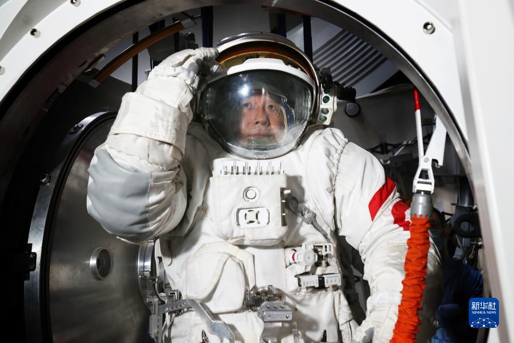 神舟十六號航天員景海鵬進行出艙程序訓練(2023年5月5日攝)。新華社發(徐部 攝)