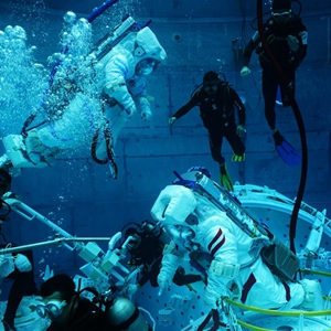 大多數航天員面對水下訓練都需要克服各種各樣的挑戰,有狹小密閉空間帶來的束縛感,有水下波紋導致的眩暈感,以及體力不支等等。朱楊柱遇到的挑戰則是上腳限位器。將厚重的鞋子近乎盲操作地卡進腳限位器2厘米左右的卡槽縫里,原本就是個高難度的技術活。他的腳型比較小,穿著艙外服配套的鞋子后,腳在鞋里晃蕩,上腳限位器更加困難。經過反復試驗,他穿上兩雙厚襪子、兩雙薄襪子后,鞋子終于合腳了。