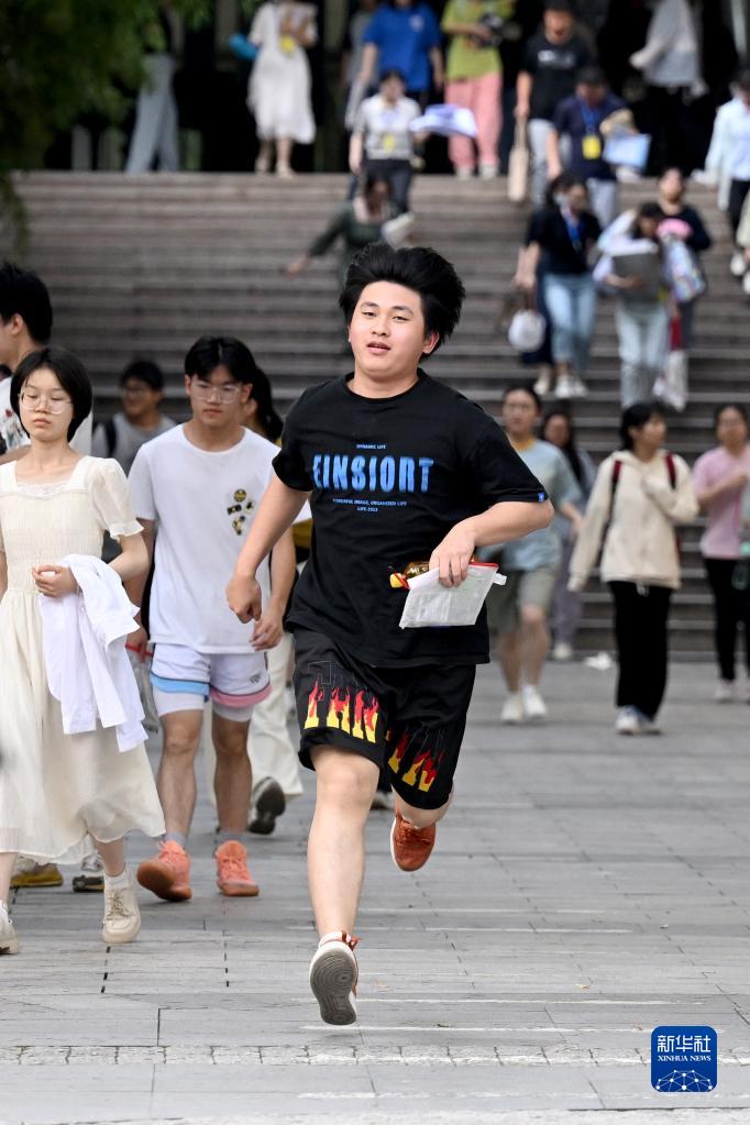 6月8日,一名考生從合肥市五十中學天鵝湖教育集團天鵝湖校區考點跑出。