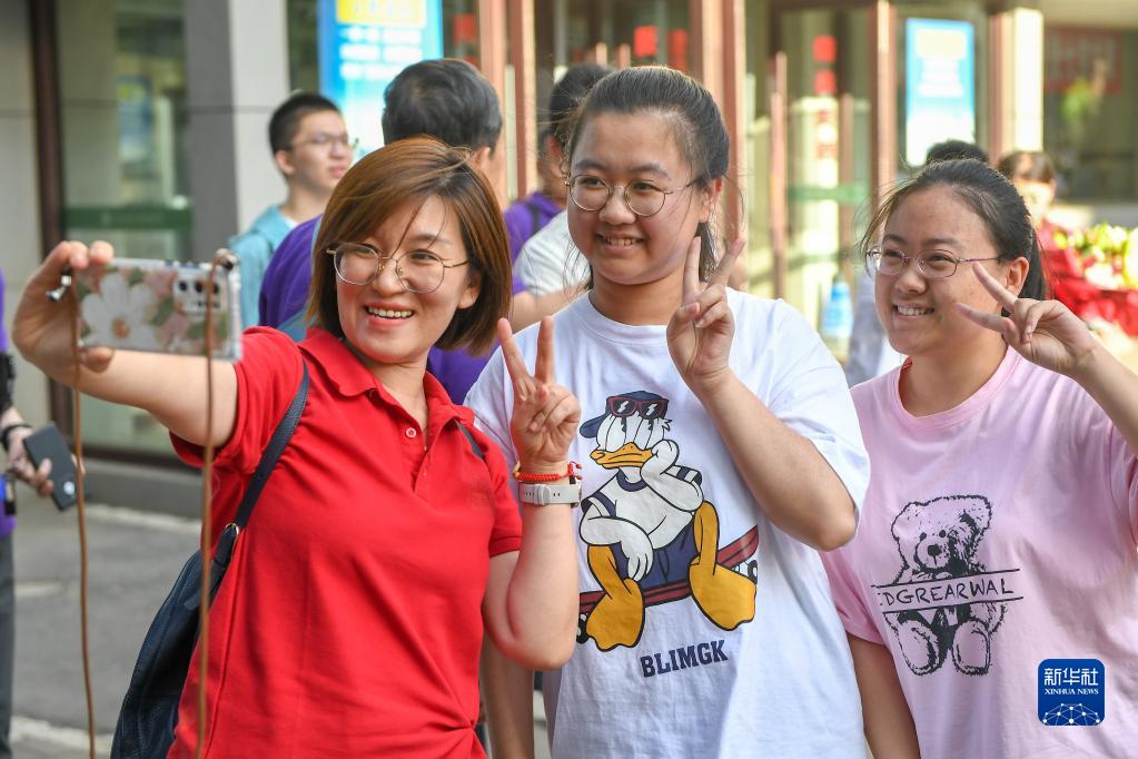 6月8日,在位于長春市的東北師大附中考點,考生與教師合影留念。