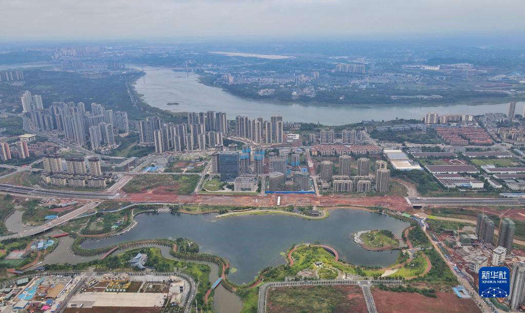 6月1日拍攝的漁子溪濕地公園與長江(無人機照片)。