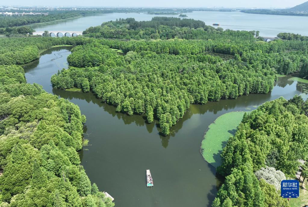 6月9日拍攝的常熟尚湖風景區景色(無人機照片)。