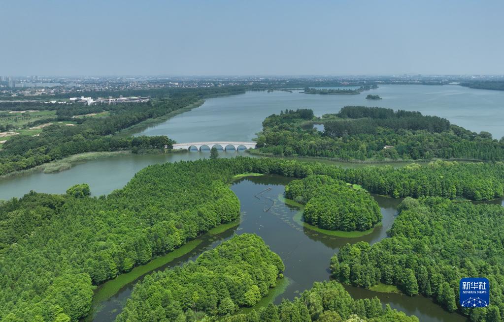 6月9日拍攝的常熟尚湖風景區景色(無人機照片)。