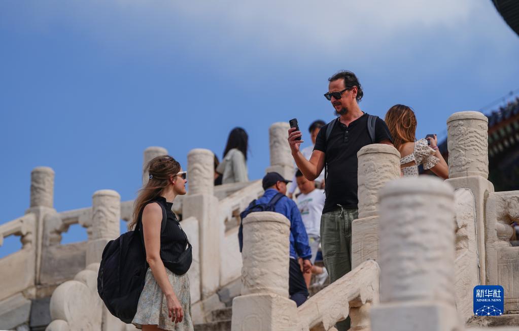 當日,北京晴好天氣持續,白云像一朵朵棉花糖漂浮在空中,令人心曠神怡。