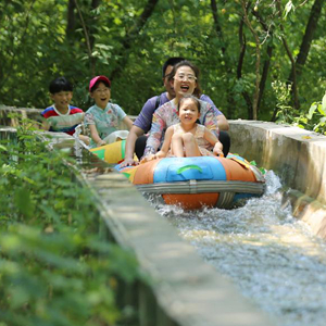 6月23日,游客在山東省沂南縣銅井鎮竹泉村體驗叢林漂流。