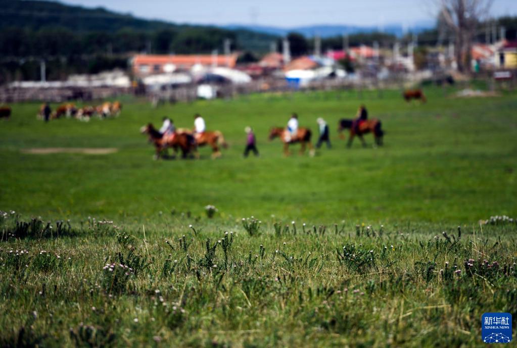 6月23日,游客在河北省承德市御道口草原森林風景區游玩。