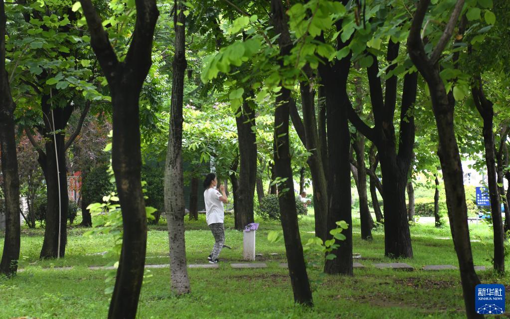6月23日,市民在廣州珠江邊的樹林里鍛煉。