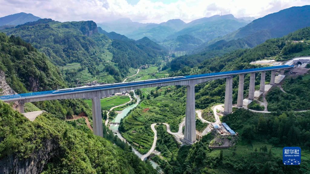 6月26日,試驗列車經過貴州貴定縣境內的桐子園雙線特大橋。新華社發(龍建睿攝)