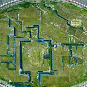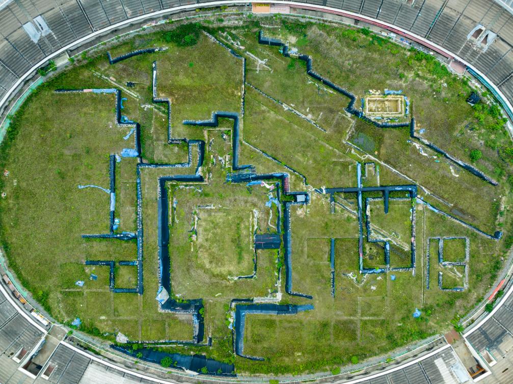 7月20日拍攝的位于成都體育中心內的東華門遺址公園遺址區(無人機照片)。新華社記者 沈伯韓 攝