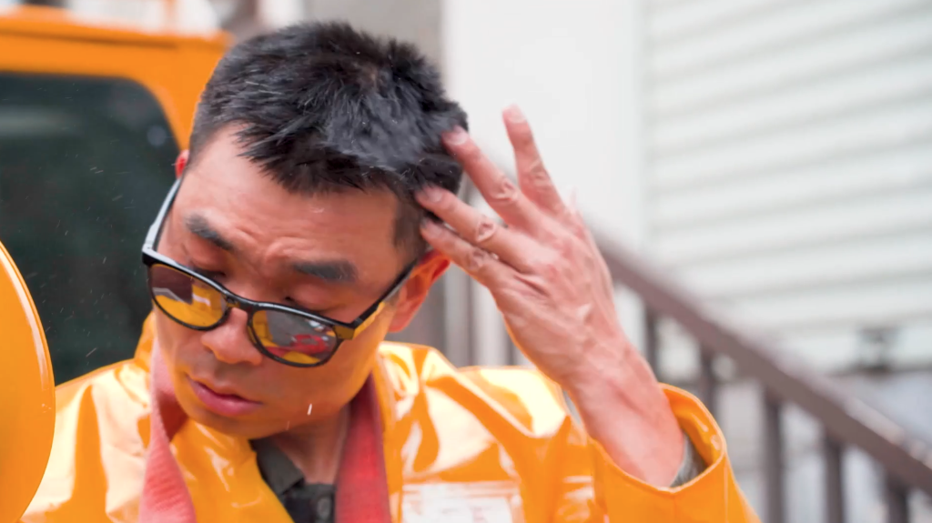 脫下防護服的喻暉,頭發、衣服、褲子早已濕透,豆大汗水順著臉直淌。