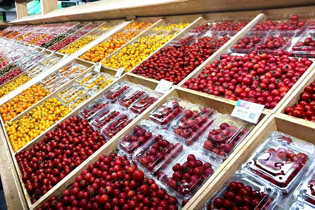 山東壽光丹河設施蔬菜標準化生產示范園展出的不同品種西紅柿。(新華社記者袁全 攝)