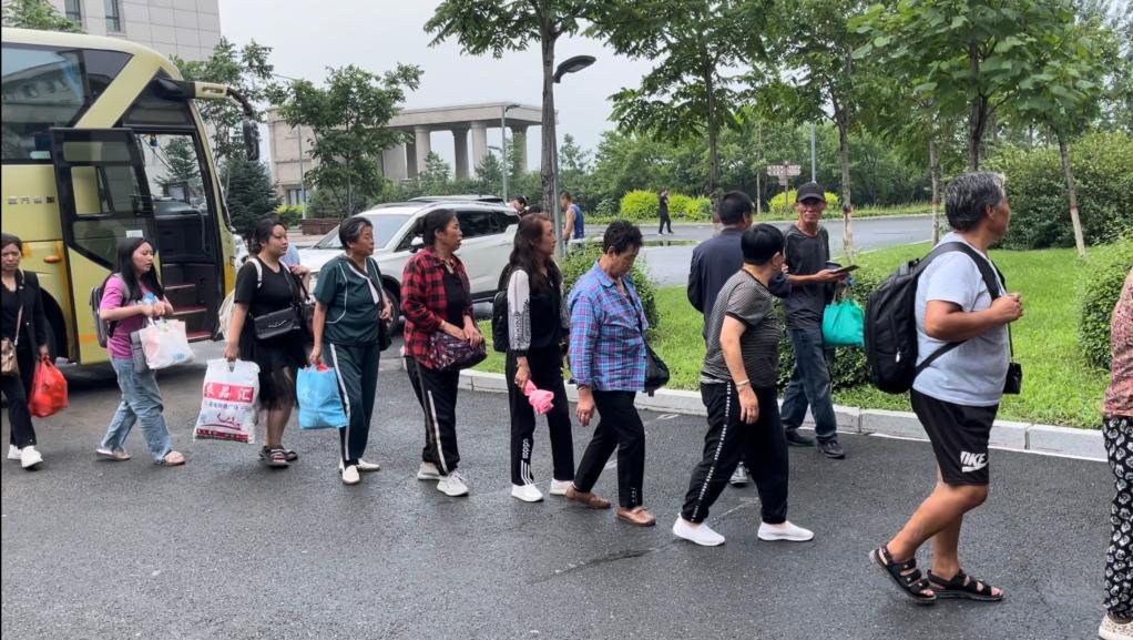 “不著急,慢點兒下,咱這兒有住的、有吃的?!眮碜悦駱粪l的群眾陸續走下大巴車,已有工作人員等在車前。在宿舍樓一層大廳,盡管人群熙熙攘攘,但忙中有序。兩名工作人員不停詢問著“姓名、電話、來自哪個村”,不一會兒,所有人的房間便分配完畢。