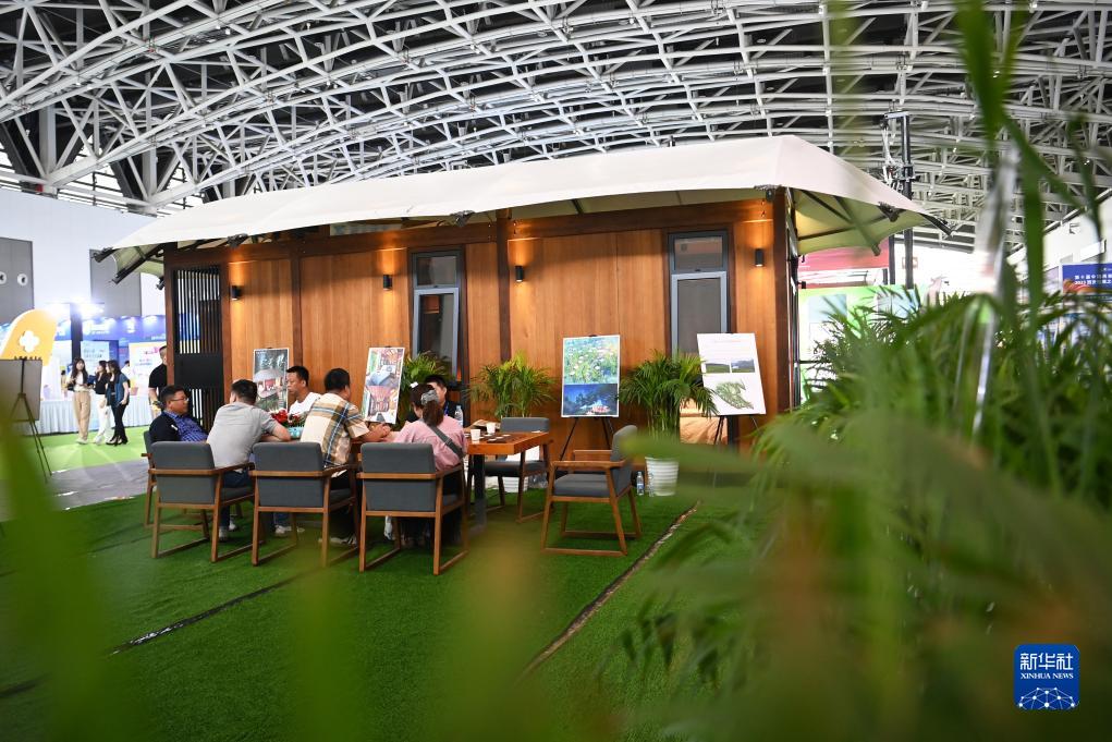 8月17日,參觀者在文旅融合館了解戶外品牌。新華社記者 鄒競一 攝