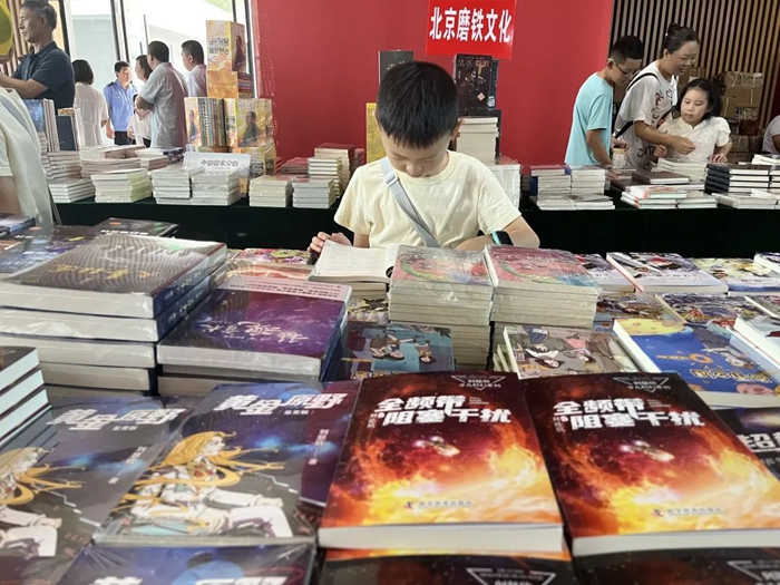即使有影視《流浪地球》系列和《三體》的加持,對于劉慈欣及其作品,問起陽泉人,有的還是茫然。也有本地人說,“學生們都知道他,讀過他的書?!蔽幕瘓@區內,“劉粉”確如夏日一般熱烈。有的在拍照,有的在購書,有的在追著要簽名和合影。在一場題為“現實主義傳統和科幻文學高地”論壇的提問環節,一個七八歲的孩子問劉慈欣,“如何成為像你一樣優秀的人”。