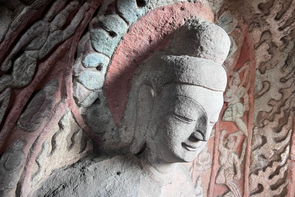 細目低垂、清秀典雅,眉如彎月、舒緩柔和——第5窟閣樓東側第二層的角落里,隱藏著一尊“云岡最美佛像”,超然一笑,慈悲盡顯?!斑@樣一尊線條精美流暢的佛陀造像,宛如沉靜的蓮花,微笑中飽含著睿智與寬容?!痹茖芯吭嚎脊潘奈镄迯褪腋敝魅畏蛘f。