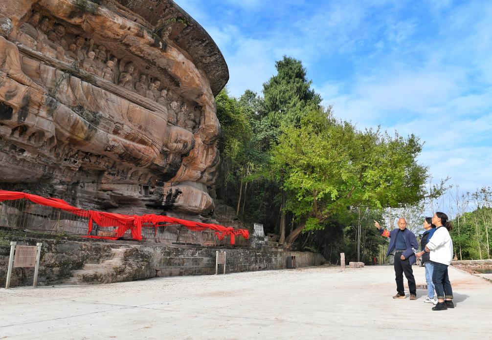 如今,當地文物保護機制不斷完善。2019年1月,資陽市出臺四川首個文物保護地方性法規《資陽市安岳石刻保護條例》,為安岳石窟保護利用提供了法治遵循。楊秀偉所在的安岳石窟研究院是四川第一個縣域副縣級文保單位,目前共有37名骨干力量,隊伍還在壯大;在80余名文物管理員構建的人防基礎上,還有技防、物防、犬防相互補充,全面織密文物安全網……