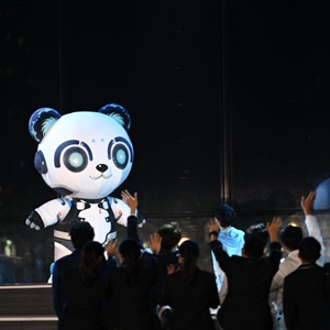 備受關注的本屆雨果獎獎杯底座也在開幕式上揭曉——一只從時空隧道探出頭來的熊貓,仰望著火箭向未來招手,向科幻致敬。據了解,這也是中國文化元素第一次出現在雨果獎獎杯底座上?,F場,2023成都世界科幻大會組委會副主席、雨果獎評選組組長戴夫·麥卡蒂將雨果獎獎杯底座與獎杯合為一體,以此寓意合作連接,人類才有無限美好的未來。