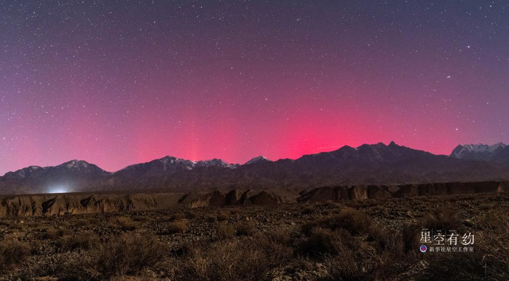 新疆星空攝影愛好者楊靂鵬2023年11月6日凌晨在新疆烏魯木齊達坂城拍攝的極光現象。(本人供圖)