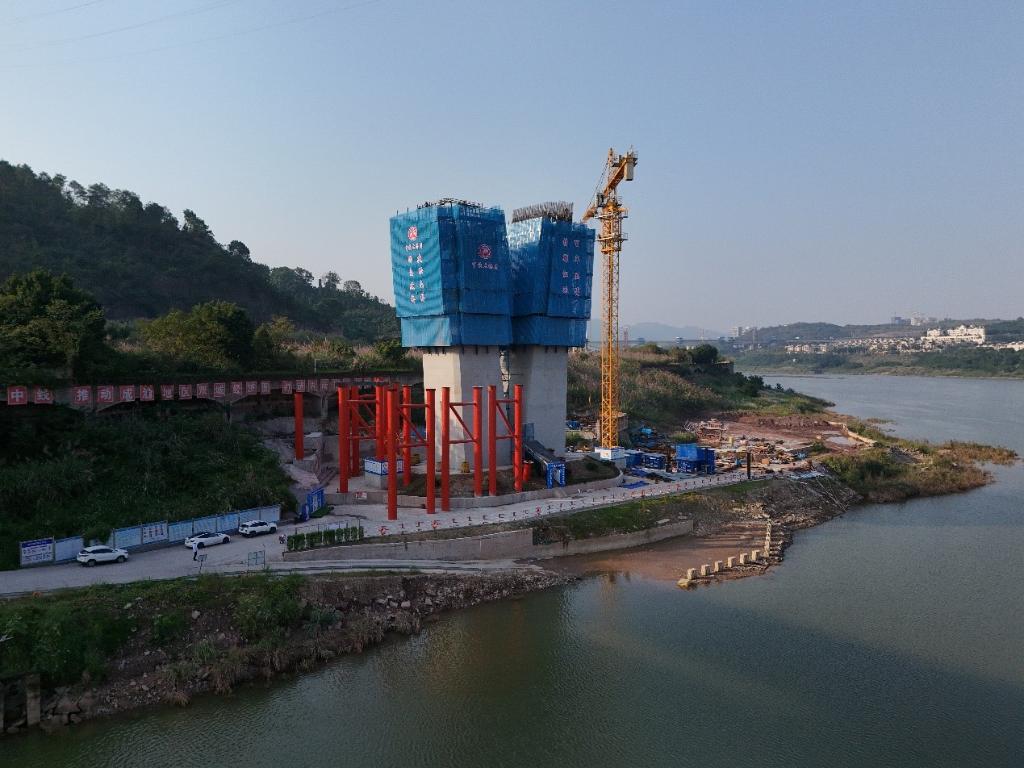 10月底,重慶沙坪壩,成渝中線高鐵井口嘉陵江特大橋建設現場,隨著最后一方混凝土澆筑,大橋兩座主墩墩身第5節全部澆筑完成?!绊椖坎靠焖偻七M大橋建設,確保全年任務順利實現?!敝需F大橋局成渝中線重慶樞紐施工1標項目總工程師李沫說。